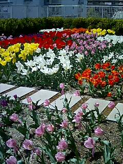 屋上に、飛ばない土を盛った花壇が工夫され、日頃の手入れが実って、見事なチューリップがいっせいに咲いていた。