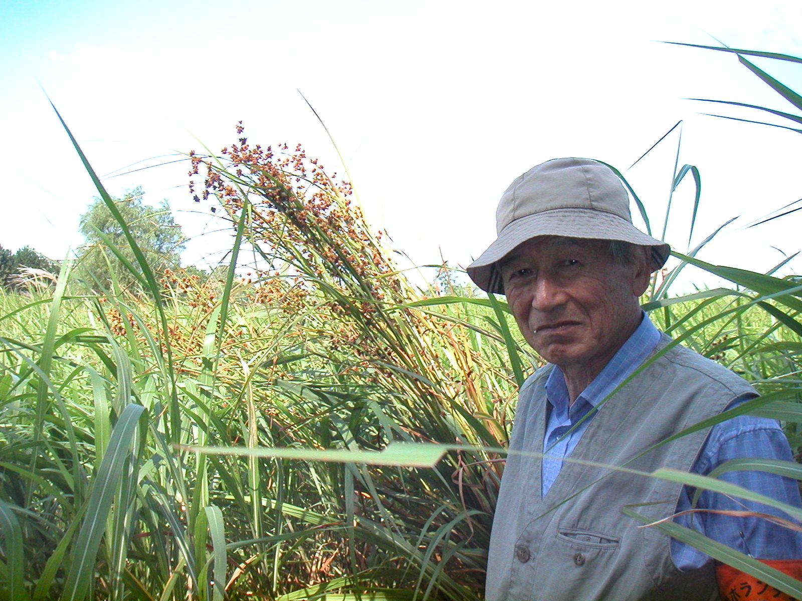 マツカサススキは尾久の原でたった1ヶ所しかないと尾久の原愛好会会長の池田稔さん。尾久の原の草木について本当に詳しい。